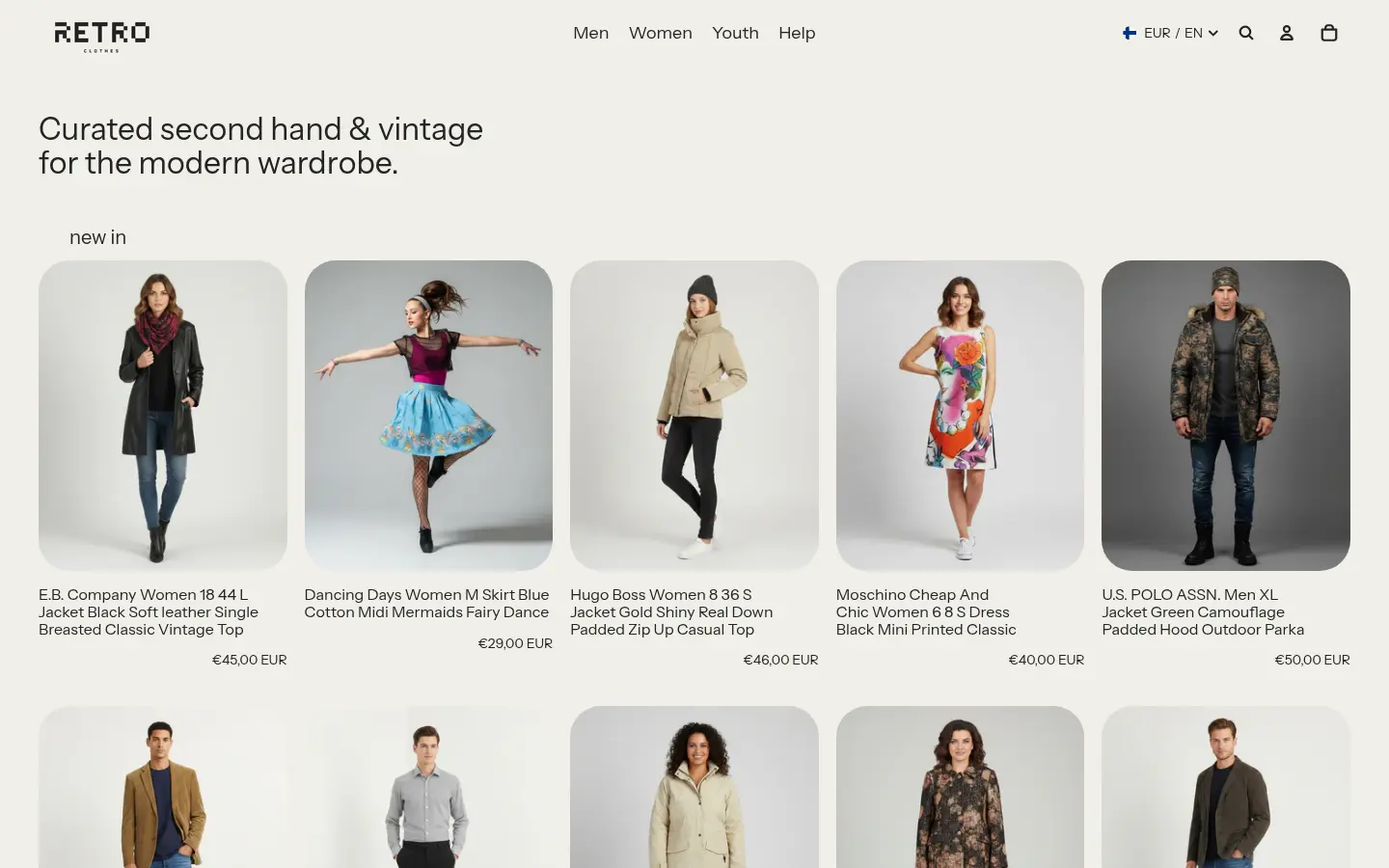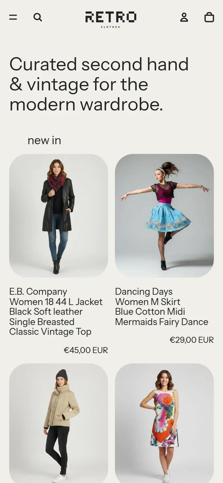 Fashion brand website with a strong visual presentation and a focus on storytelling through layout.
